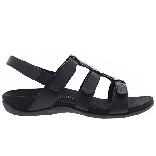 Shoes can have great effect on your body, treat yourself to stylish 44 Amber sandal by Vionic. With crock impression, black upper those strappy sandals have podiatric designed FMT Technology which will take care of your feet and health. Adjustable velcro straps allow for adjustable fit and gem stones at the forefoot bring a touch of glamour. Microfiber covered biomechanical footbed massages feet and thanks to Foot Motion Technology it can reduce over-pronation, heel pain, knee pain, back pain and much more. Contoured sandals have deep heel cup for stable support and lightweight and flexible EVA midsole, which is shock absorbent and reduces shock put on feet and joints. Slingback sandals help to align feet from the ground up and support correct posture. Durable, thanks to the synthetic upper and breathable due to the textile lining. This elegant summer footwear has traction pattern, rubber sole which secures durability and grip.